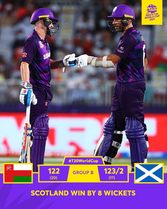 He is able to maximise the conditions in his favour. Scotland Beat Oman By 8 Wickets Qualify For Super 12s Oman take on Scotland in a crucial ICC T20 World Cup 2021 Group B match in the first round of the. With three wins in as many Group B matches in Round 1 Scotland confirmed their Super 12 berth by topping the group.